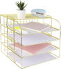 Spacrea Letter Tray, 4 Tier Desk Organizers and Accessories, Stackable Paper Tray Organizer Desk File Organizer with 1 Upper Display Shelf for School Home Office Supplies (Gold)