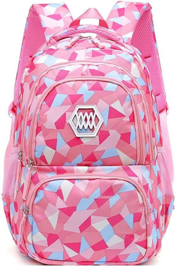 WSLCN Girls School Bag Geometric Print Backpack Waterproof Preppy Schoolbag for boy Girl (42 * 15 * 31cm, pink)